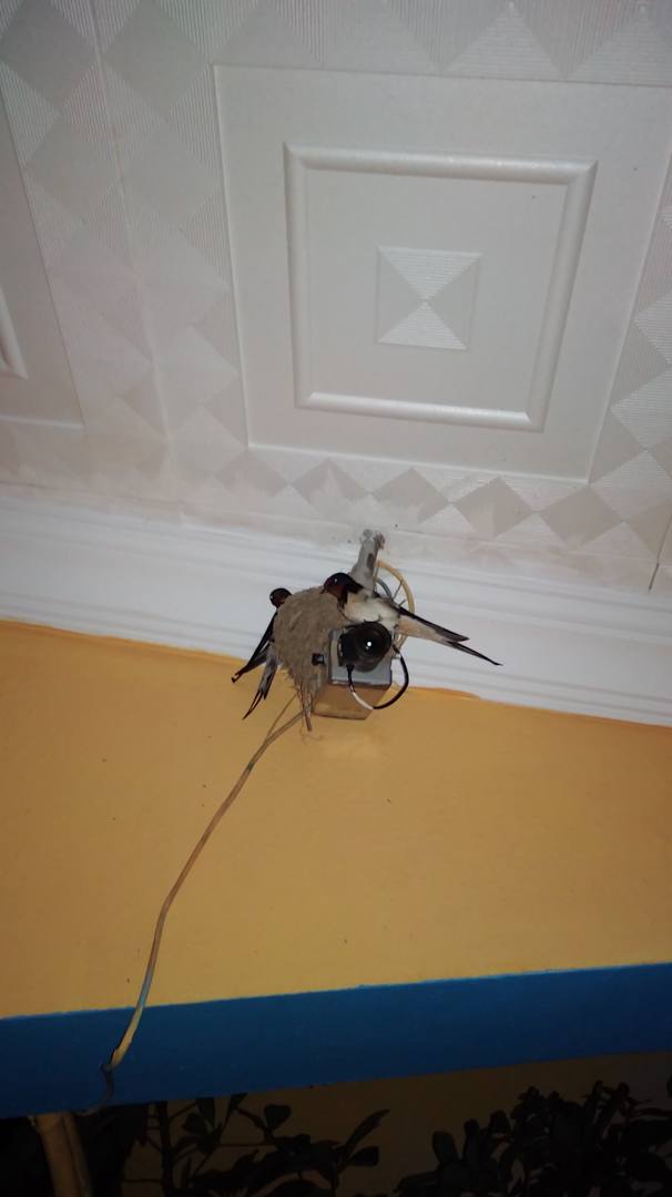 Dieses Schwalbenpaar hat sich eine Überwachungskamera als Nistplatz ausgesucht. Datum 07.06.