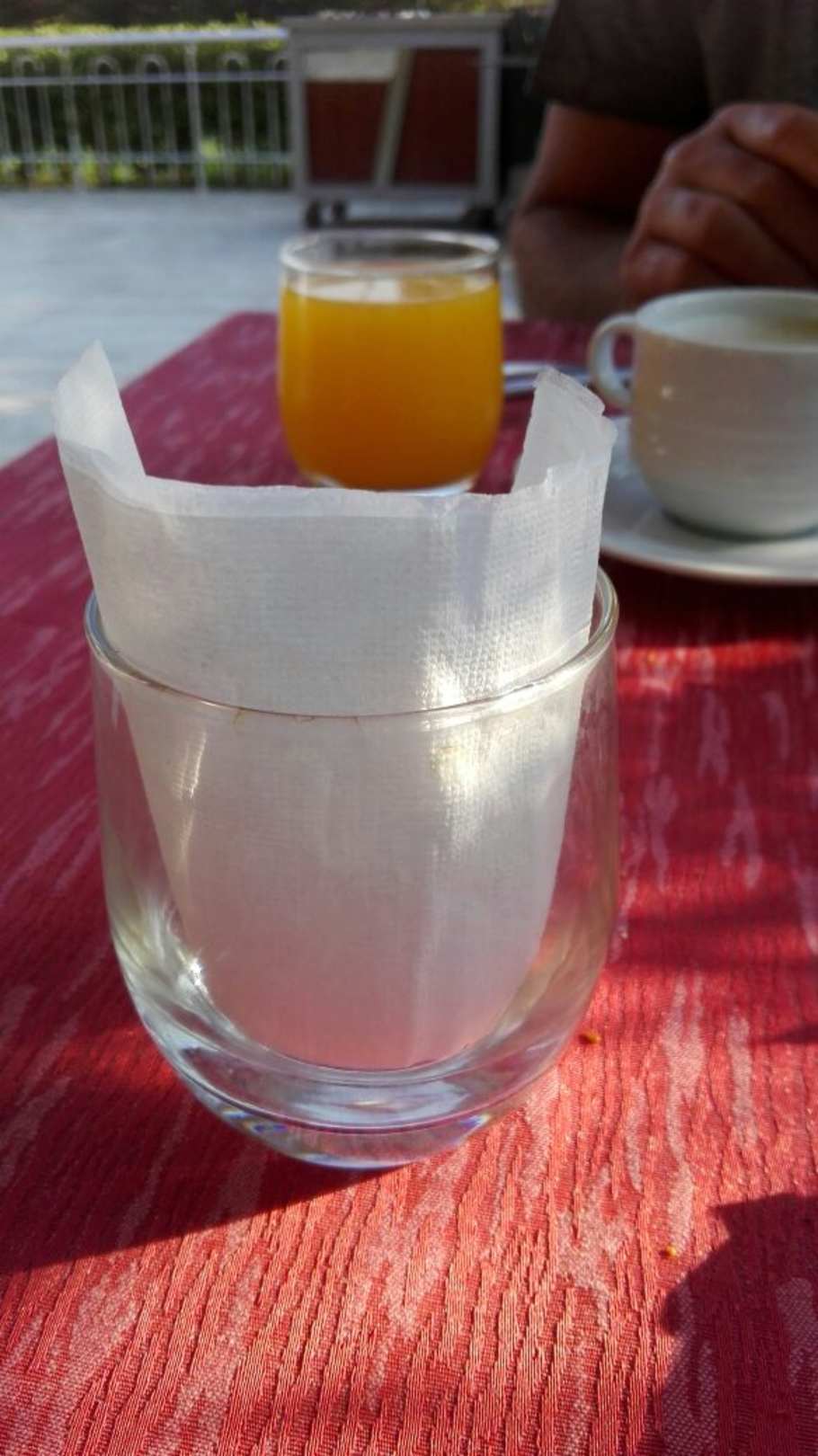 Verschmutzte Gläser beim Frühstück
