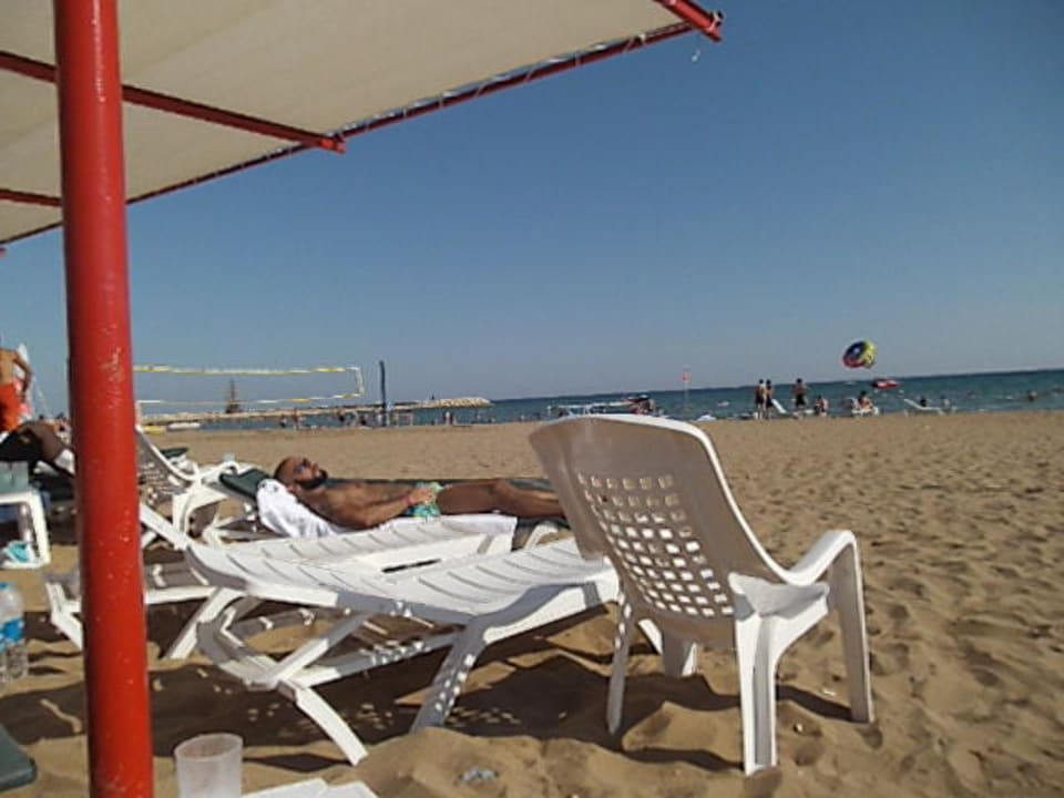 Blick von Hotel-Strandliegen zum Meer Side Win Hotel & Spa