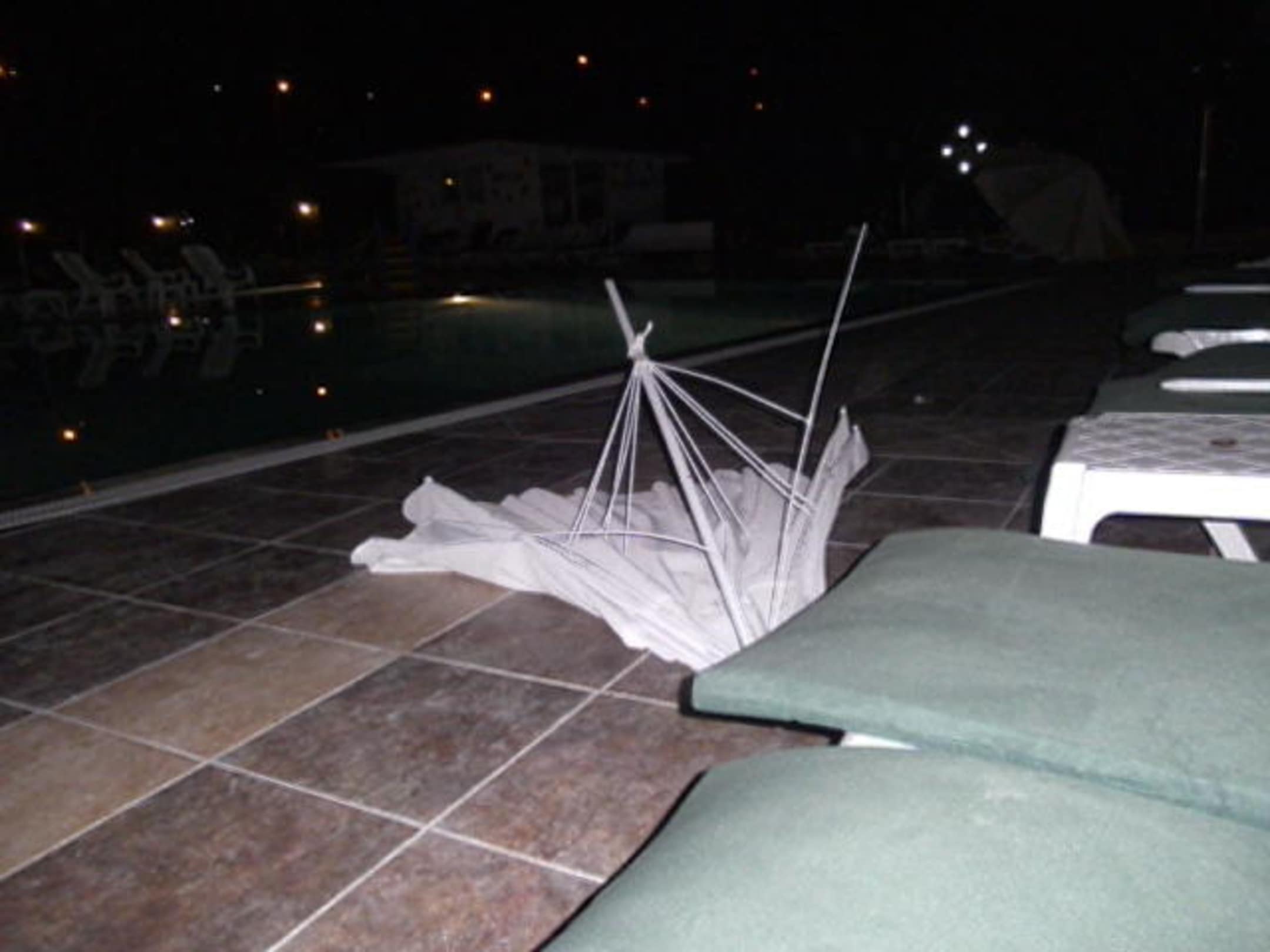 Die Befestigung der Schirme in den Ständern schien Probleme zu bereiten... oft lagen defekte Sonnenschirme wild verstreut um den Pool herum
