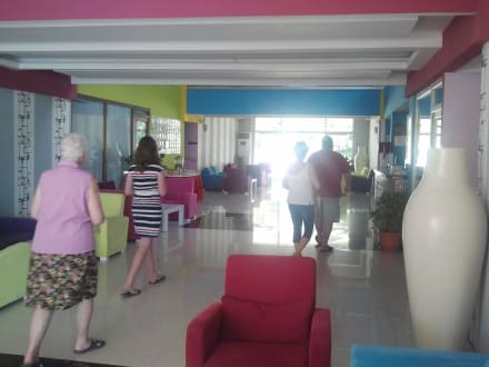Eingang und RezeptionDer Blick ins freie zeigt den Eingang und auf der rechten Seite befindet sıch die Rezeption