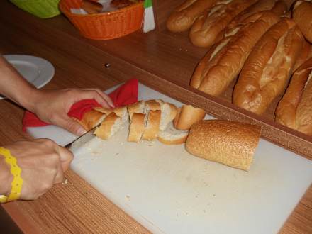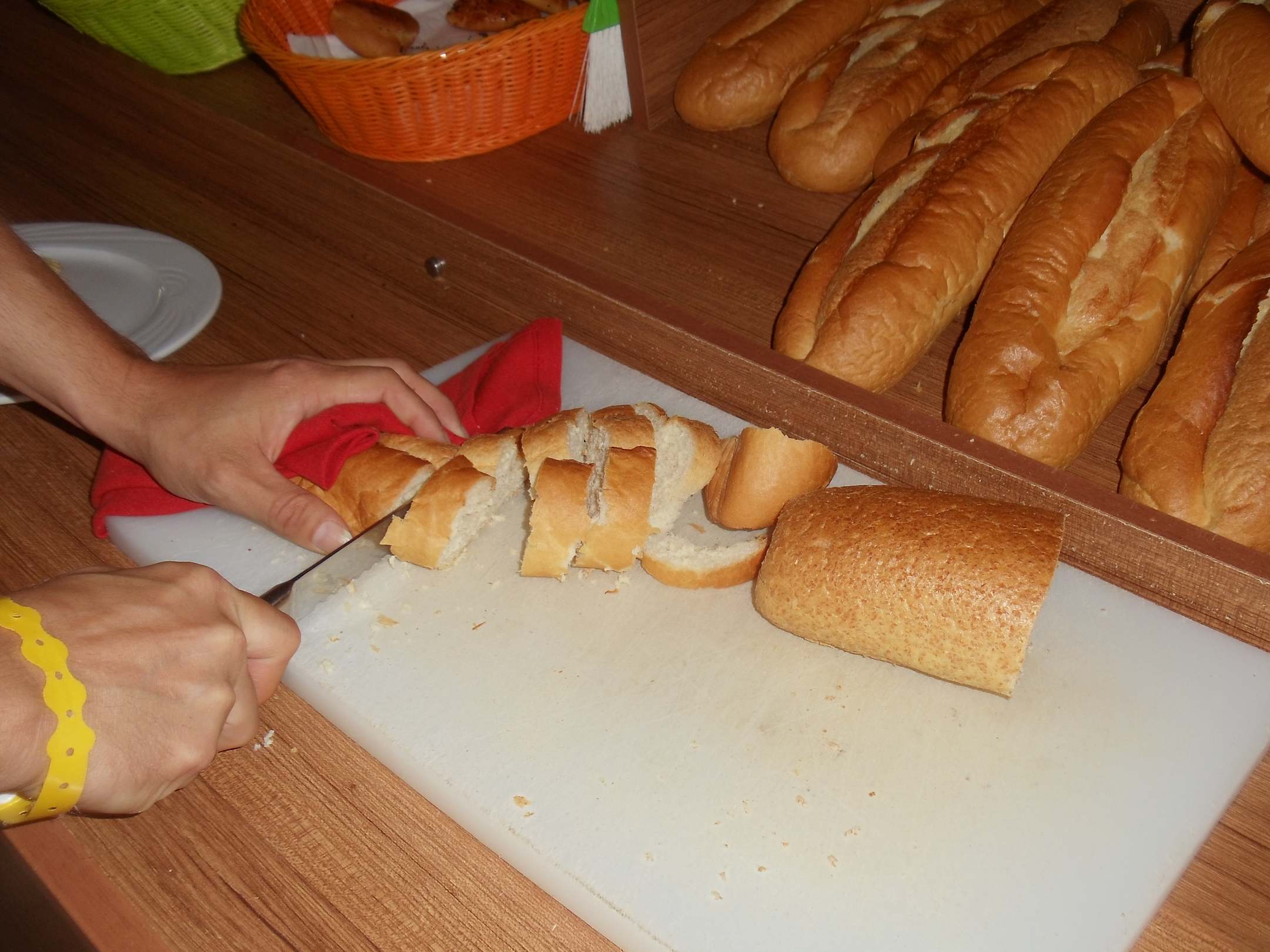 Restaurantdrei Tage altes Weißbrot beim Frühstück