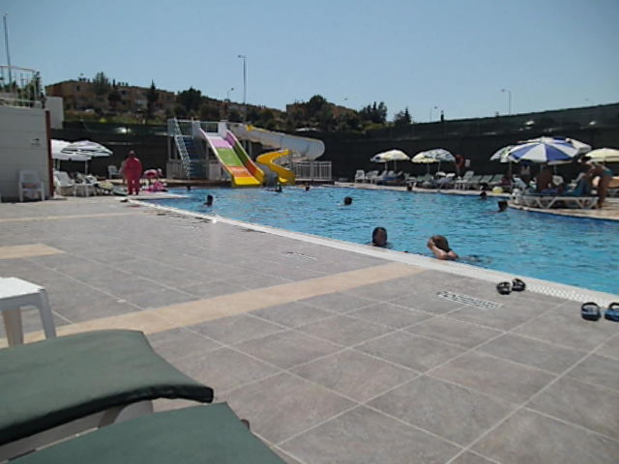 Poolansicht von Liegen aus
