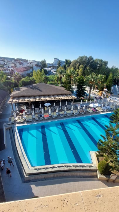 Im Hintergrund die Poolbar. Abends immer Livemusik.