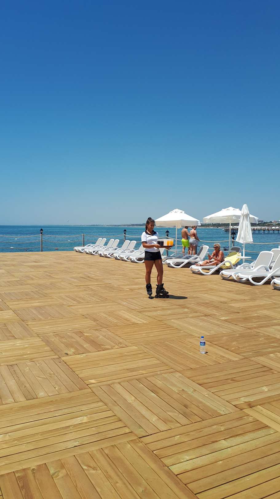 Frisch eröffnete Plattform. Bedienung auf Rollschuhen