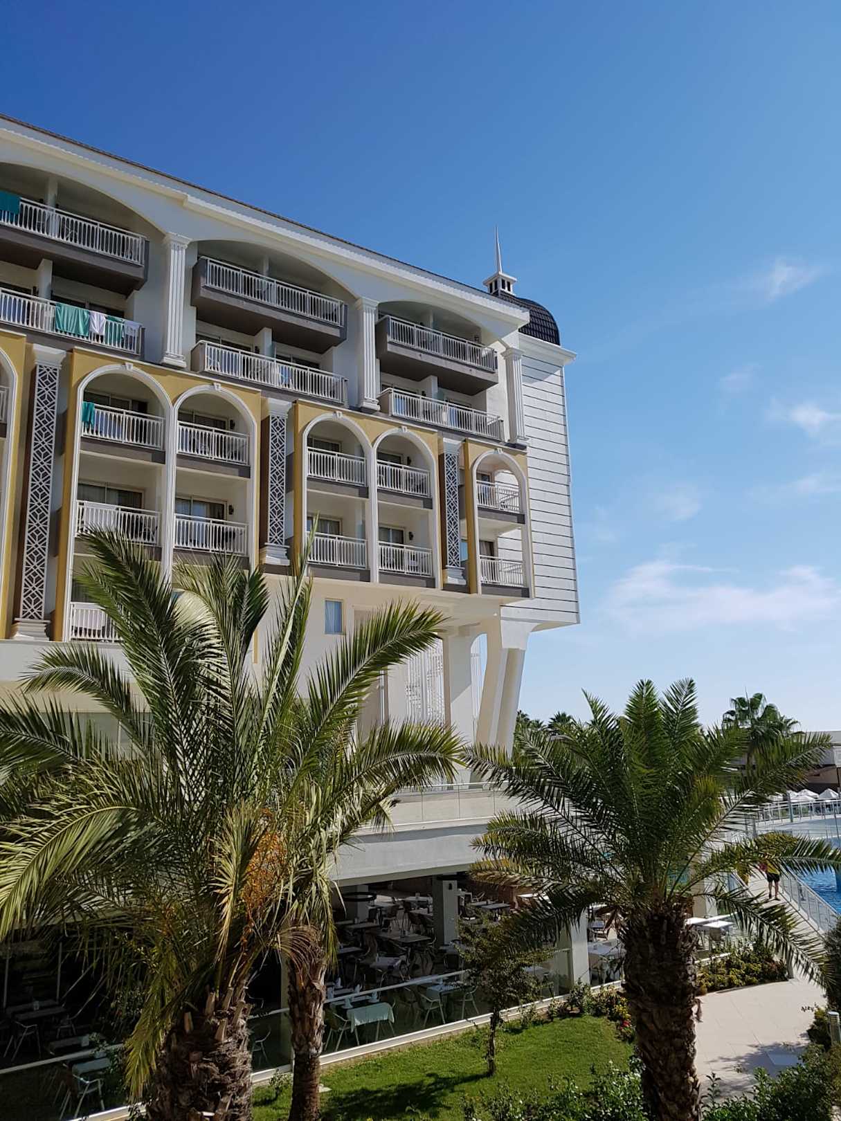 AußenansichtAnsicht von der gegenüberliegenden Seite auf unser Zimmer/Balkon im 5. Stock ganz rechts