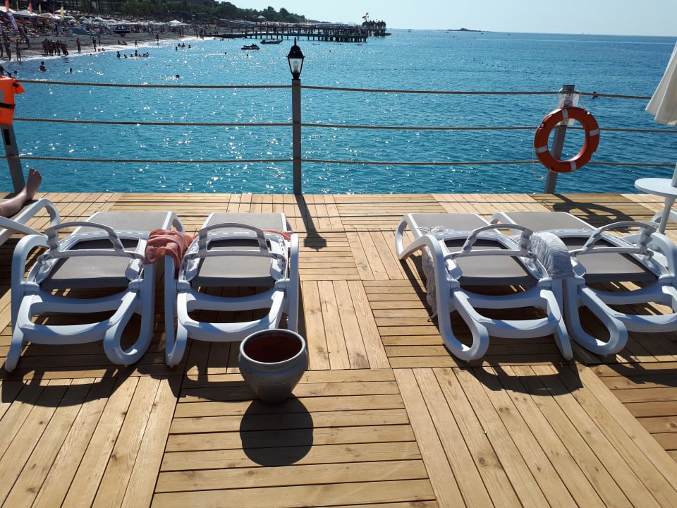 reservierte und nicht genutzte Liegen auf dem Steg 10.45 Uhr