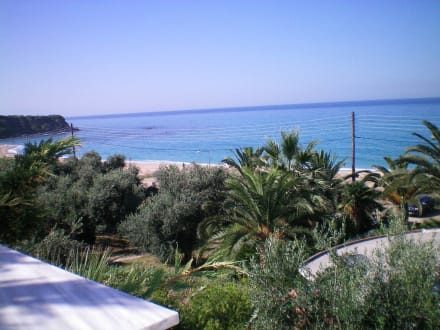 Blick vom vorderen Haus auf Strand und Meer