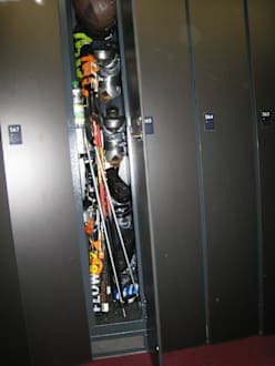 Umsichtiger Service - eigener Skikastel direkt an der Talstation, mit beheizten!! Schuhaufhänge- Stangen. Bequem in Sportschuhen zur Talstation und und nachmittags wieder bequem zurück.