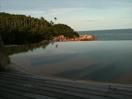 der Pool ist hoch oben auf Felsklippen gebaut, mit direkten Blick aufs Meer