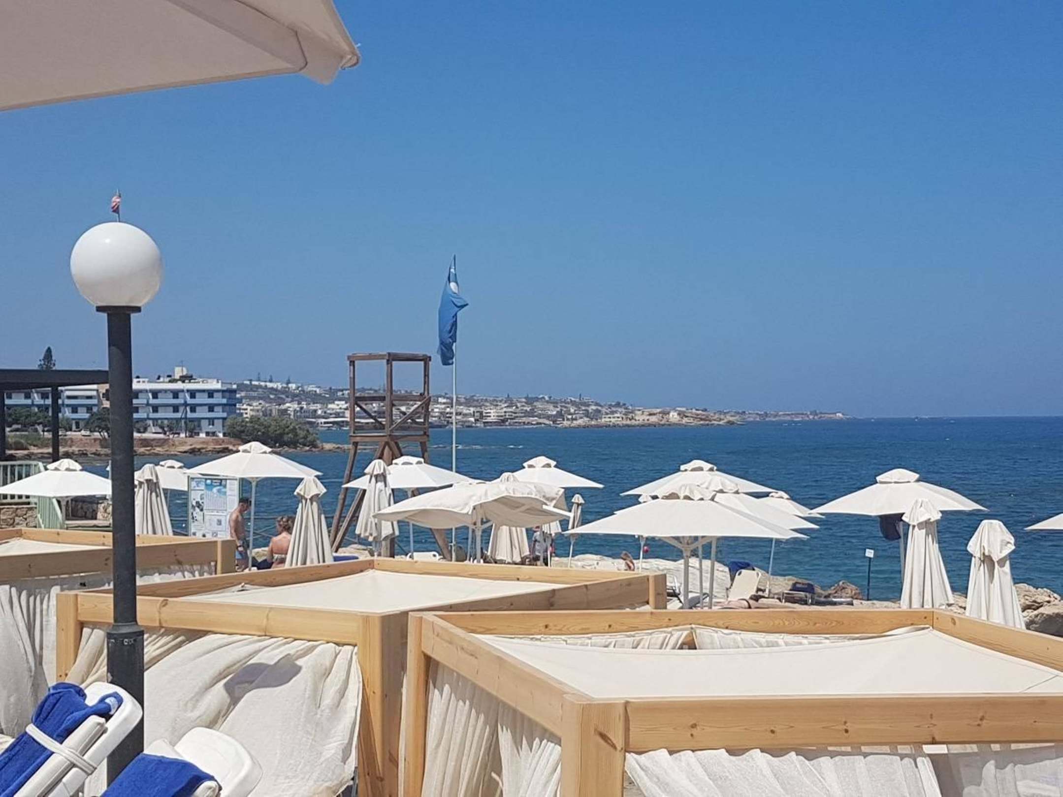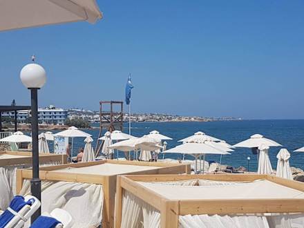 Widok z tarasu basenu na plażę
