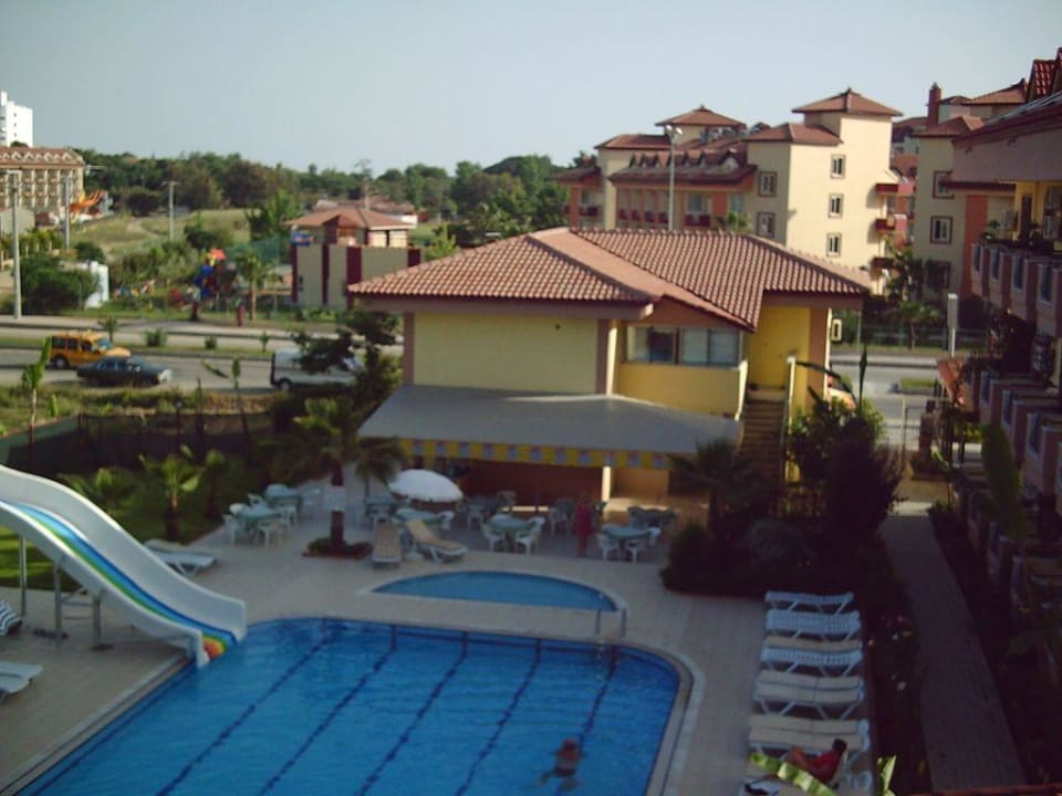 Wieder vom Balkon, das Gelbe Haus Pool-bar + Haus des Chefs!