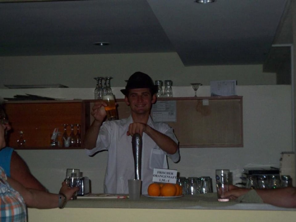 Osman beim Bierzapfen