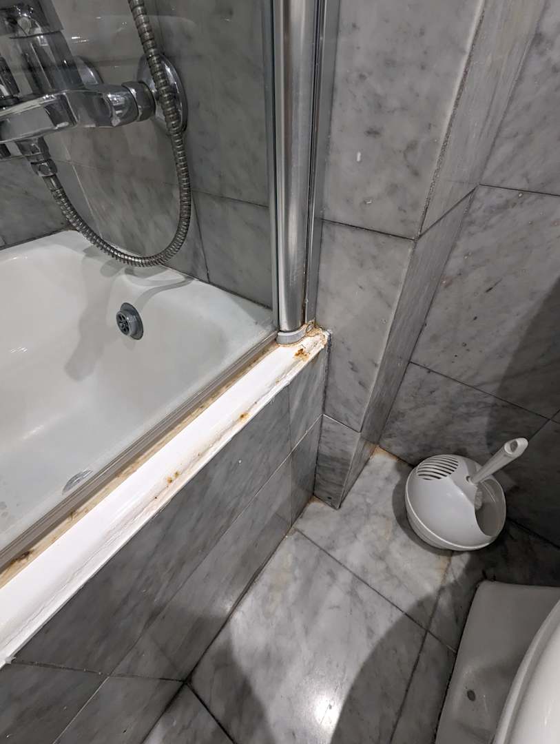 Das Badezimmer ist verschimmelt und schmutzig