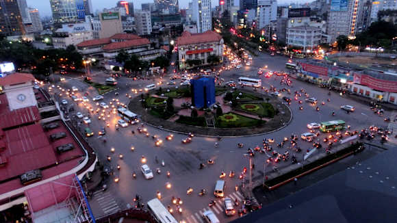 Ausblick vom Club auf der Dachterrasse auf den Kreisverkehr vor dem Cho-Ben-Than