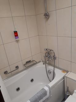 Bad im Zimmer der noch nicht renovierten und modernisierten Zimmer. Haus 1