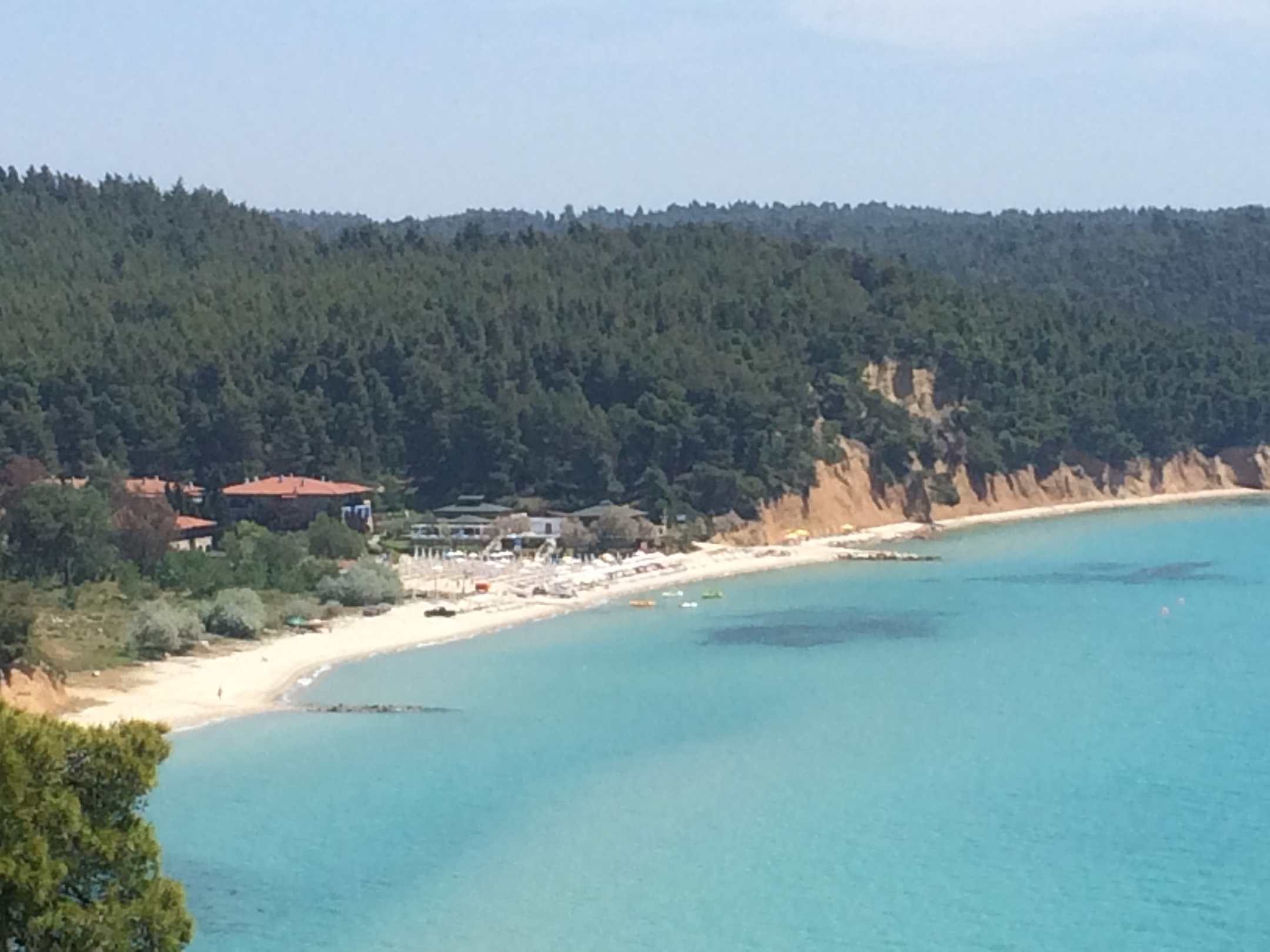 Blick auf den Hotelstrand von der Klippe aus