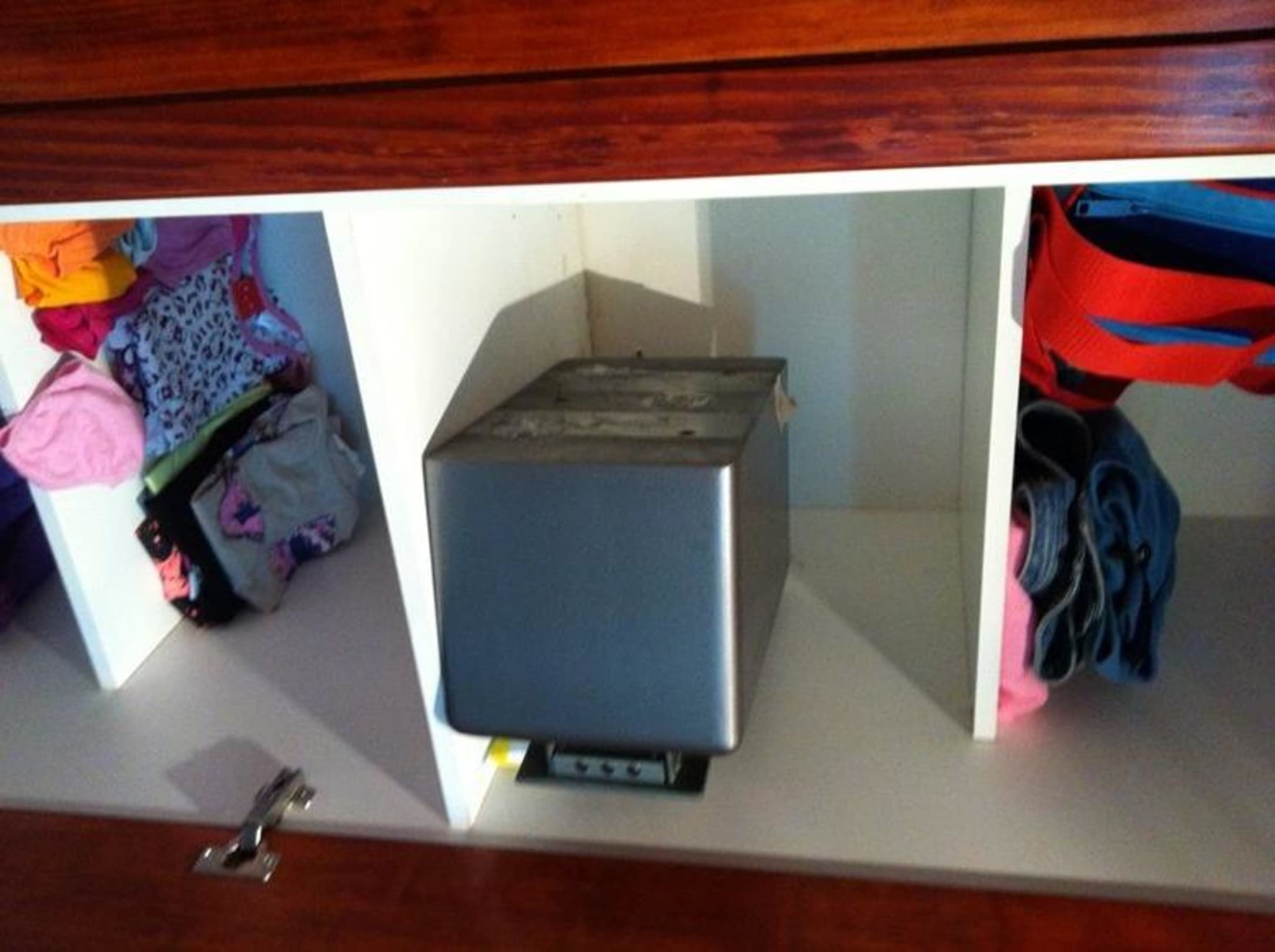 Safe mit Spax-Schraube befestigt