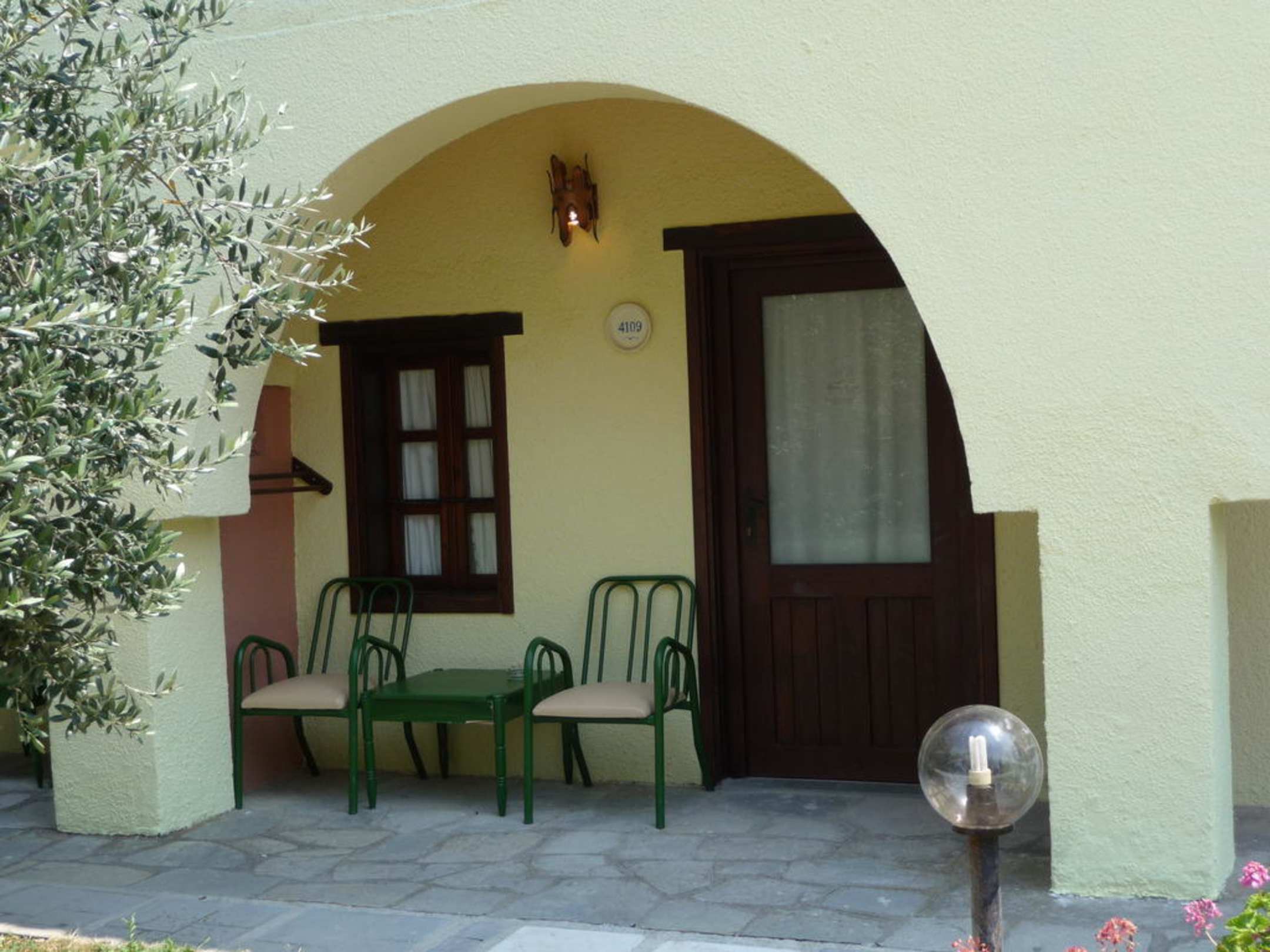 Hier sollten 4 Personen sitzen können, mit 2 Stühlen und einem kaputten Tisch. Hat die Stühle nur 2 cm bewegt, saß man direkt auf dem Durchgangsweg!