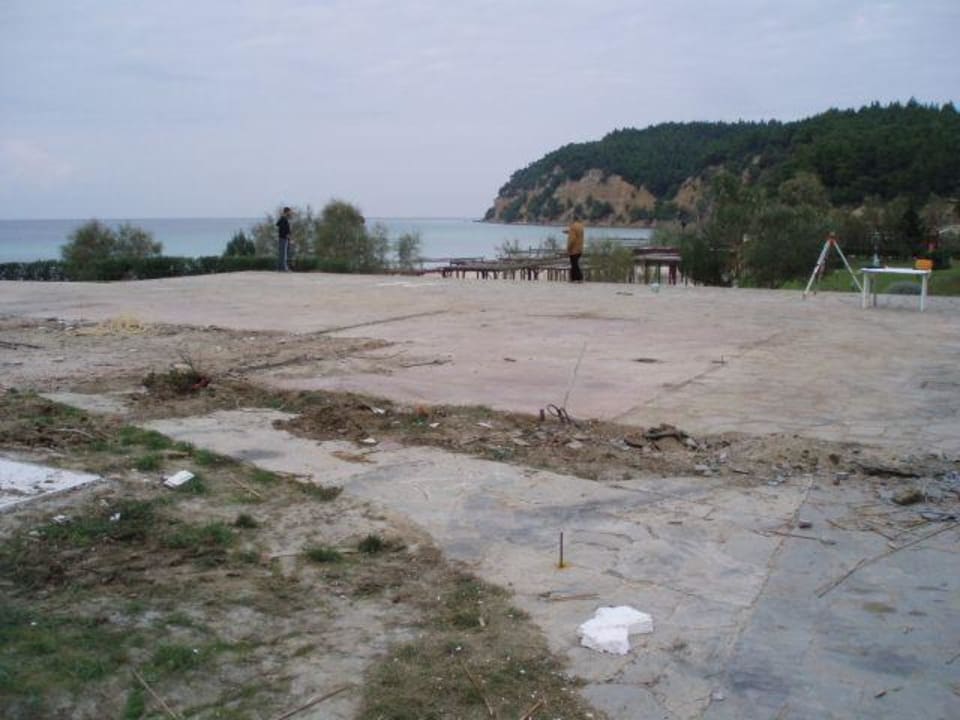 Fläche der ehemaligen Beach-TaverneAlles wurde abgebaut, Taverne, Kinderclub, Toiletten und die Beachbar. Alles wird jetzt absolut neu gebaut.