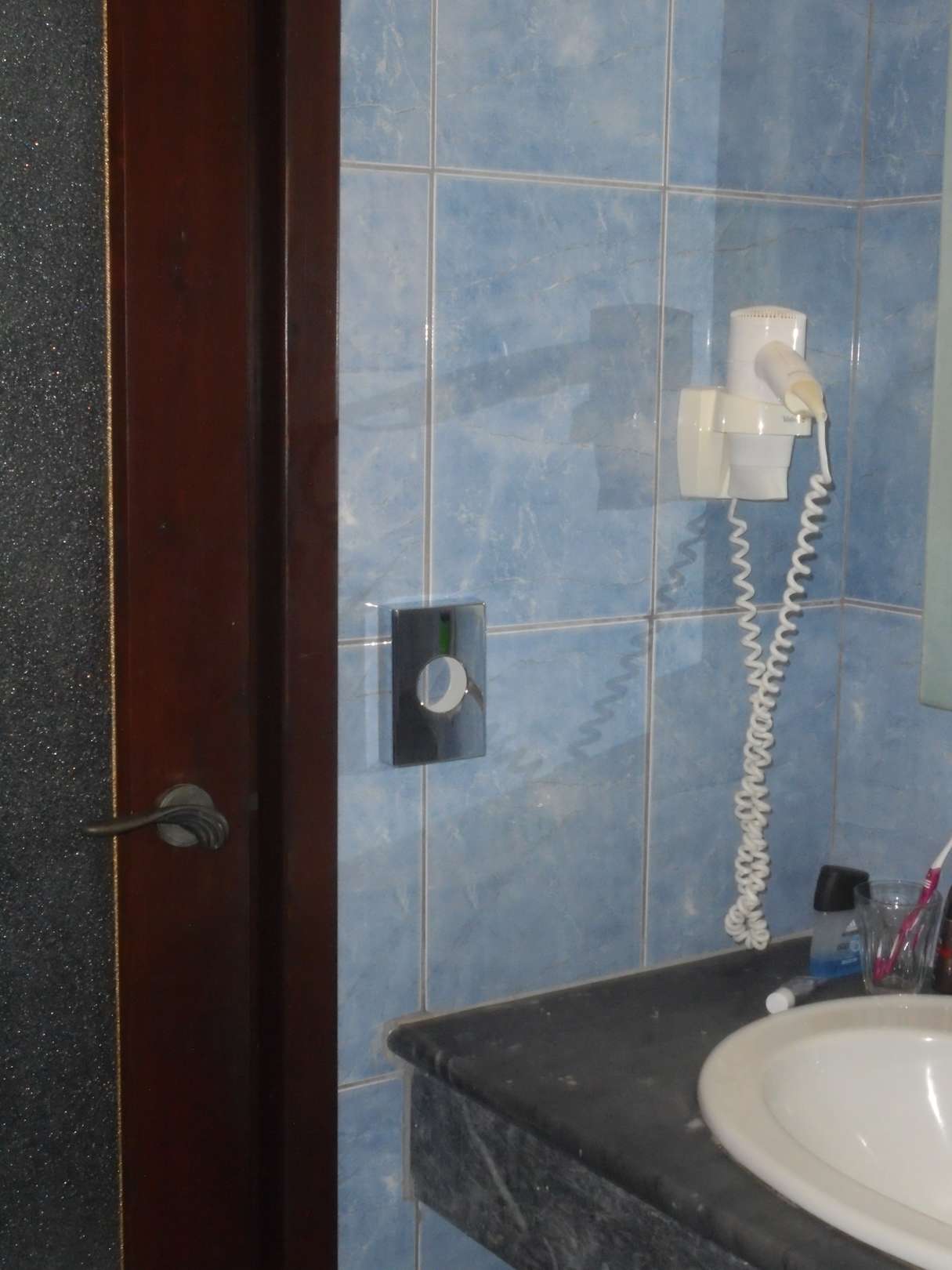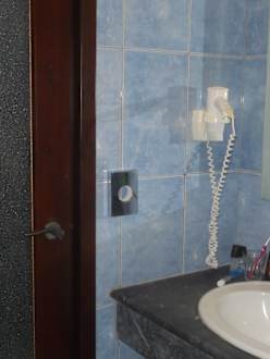 Im Badezimmer ist ein Föhn vorhanden