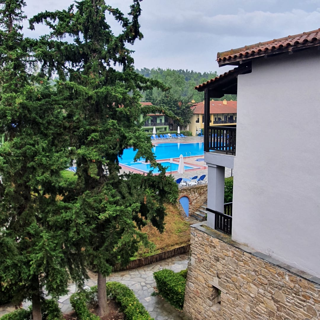 Ausblick vom Zimmer auf Hotelanlage Pool