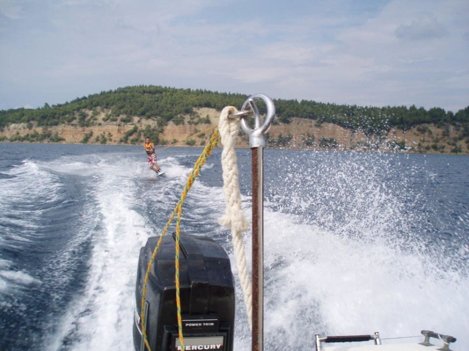 Wakeboardfahren im Meer vorm Simantro-Beach-Hotel