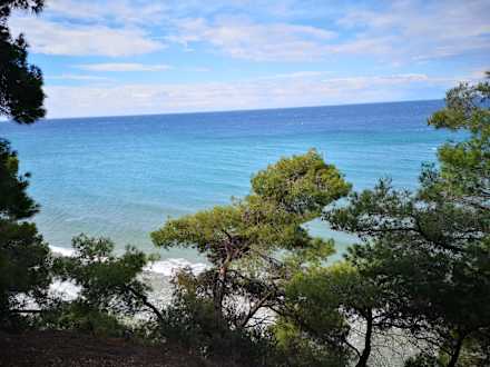 Wunderschönen Blick wenn man ein wenig höher in den Pinienwald läuft