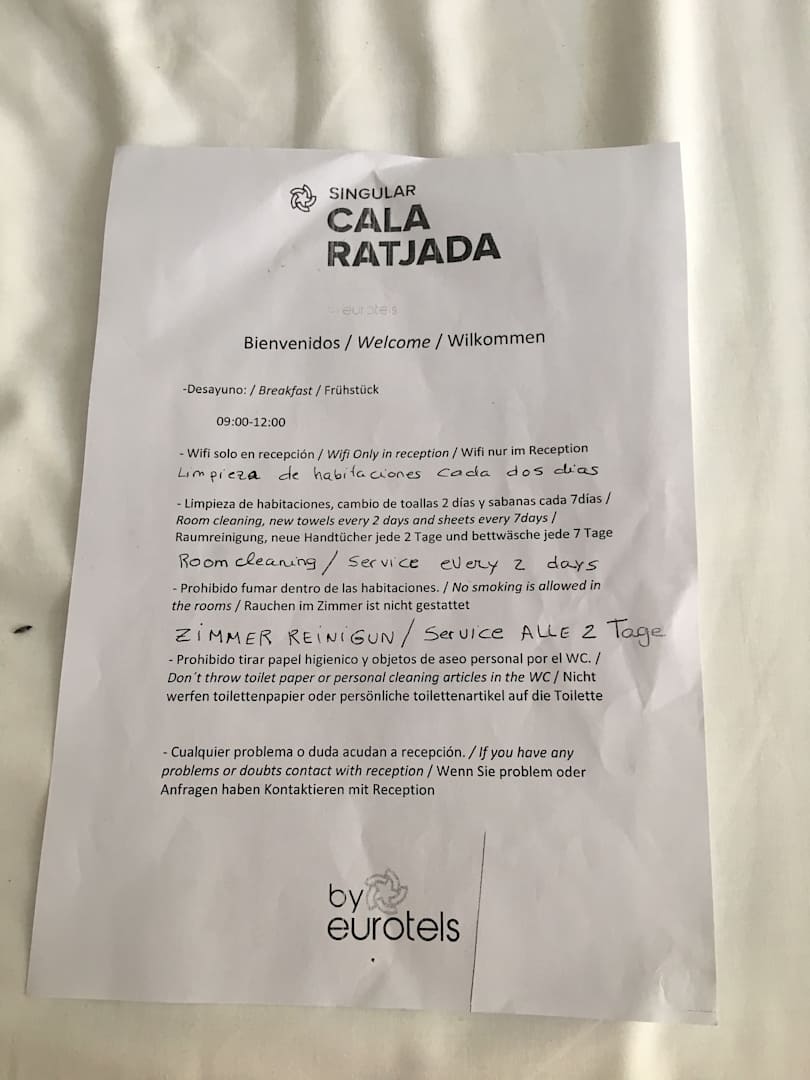 Zimmerreinigungsankündigung