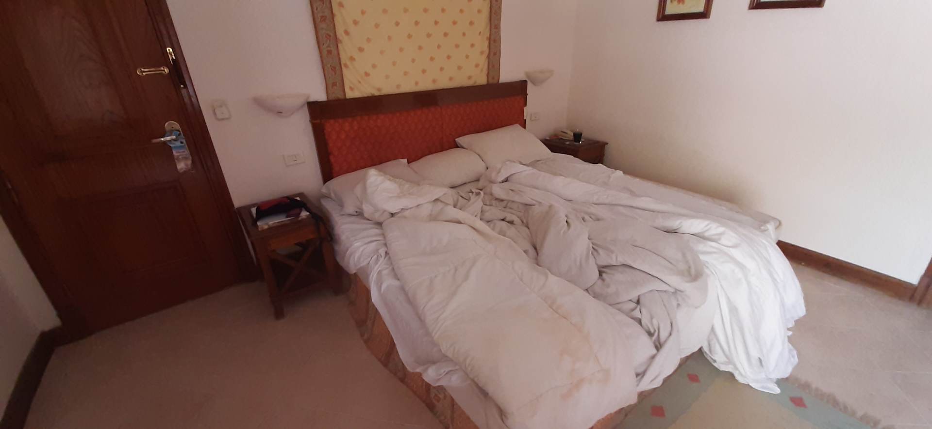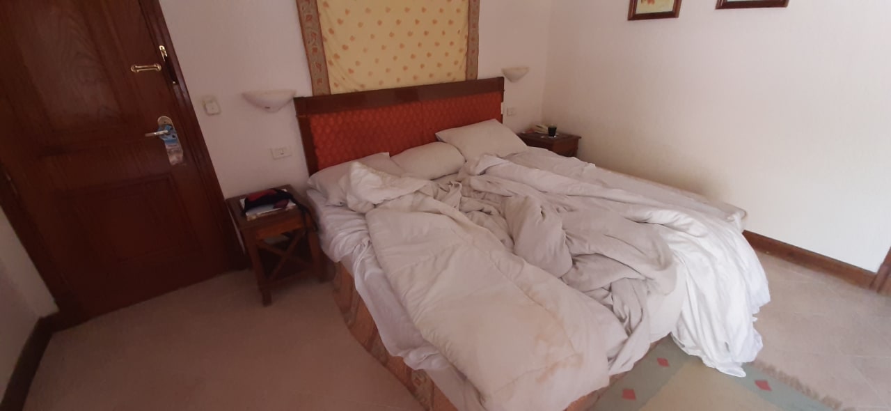 Unser Zimmer!!!! Kein Reinigungsraum!! Zudecke voller Flecken