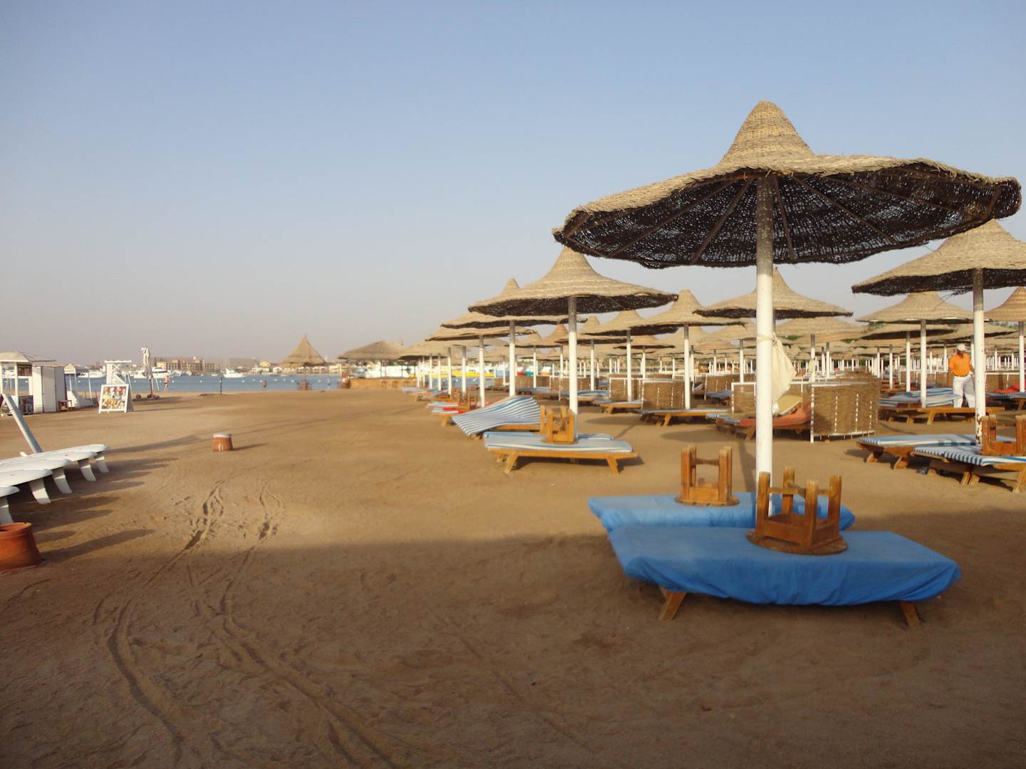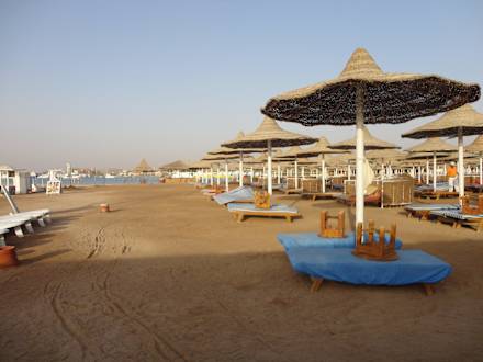 Der Hotelstrand am frühen Morgen..