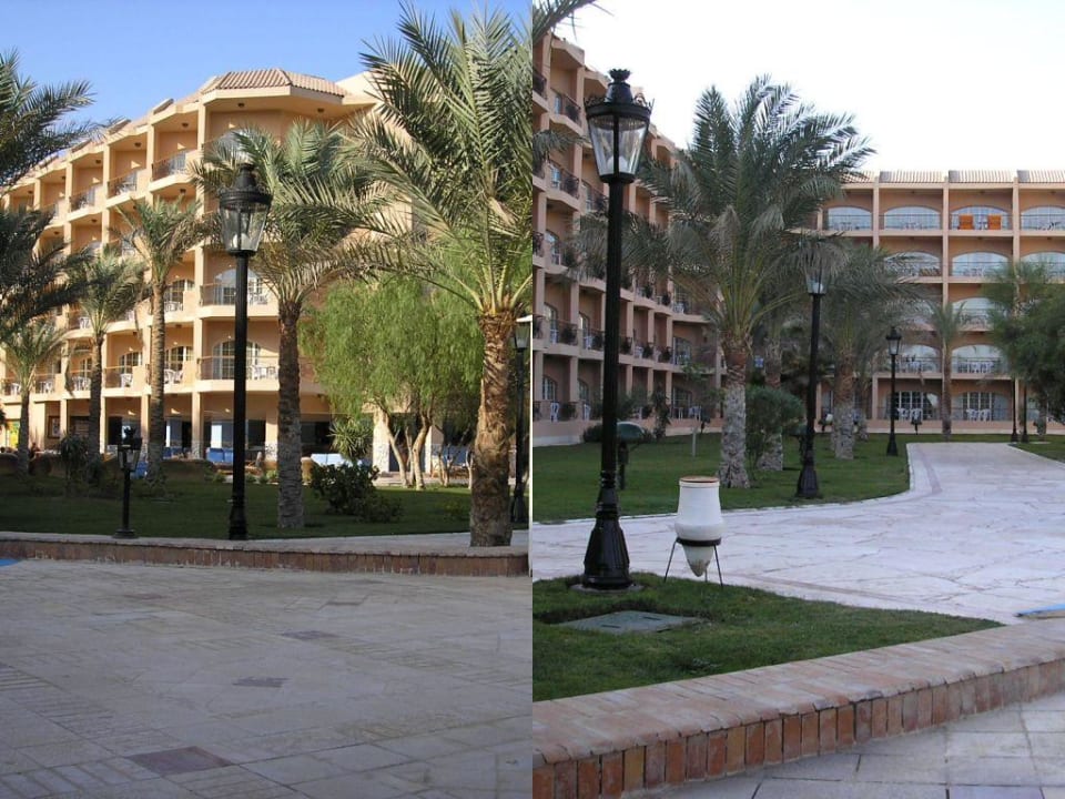 Blick vom Liegestuhl auf die Hotelanlage