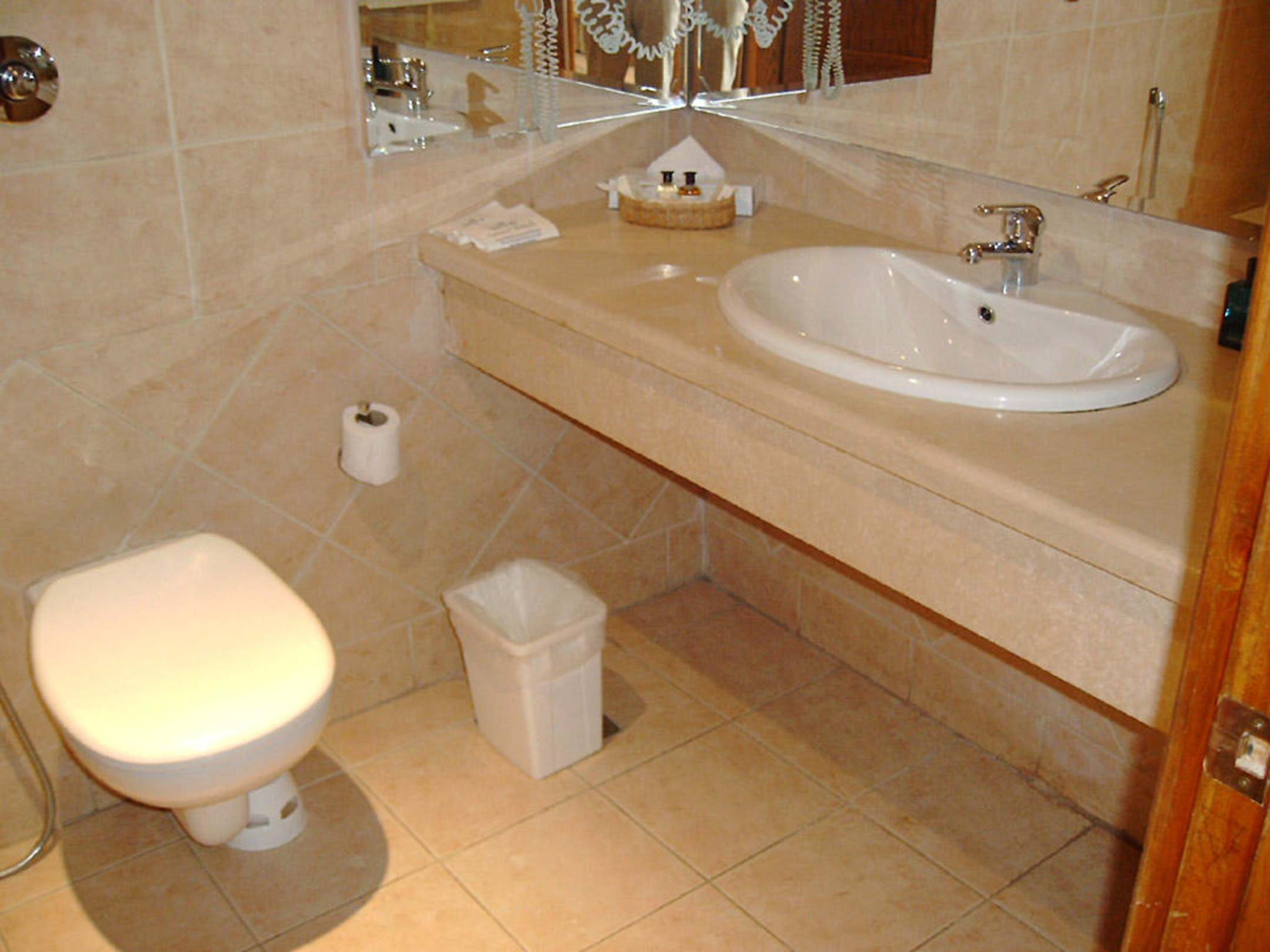 Bad unserer JuniorsuiteToilette und Waschbecken - bis auf die unbedeutenden, etwas ungenau gearbeiteten Fliesenfugen immer blitzsauber