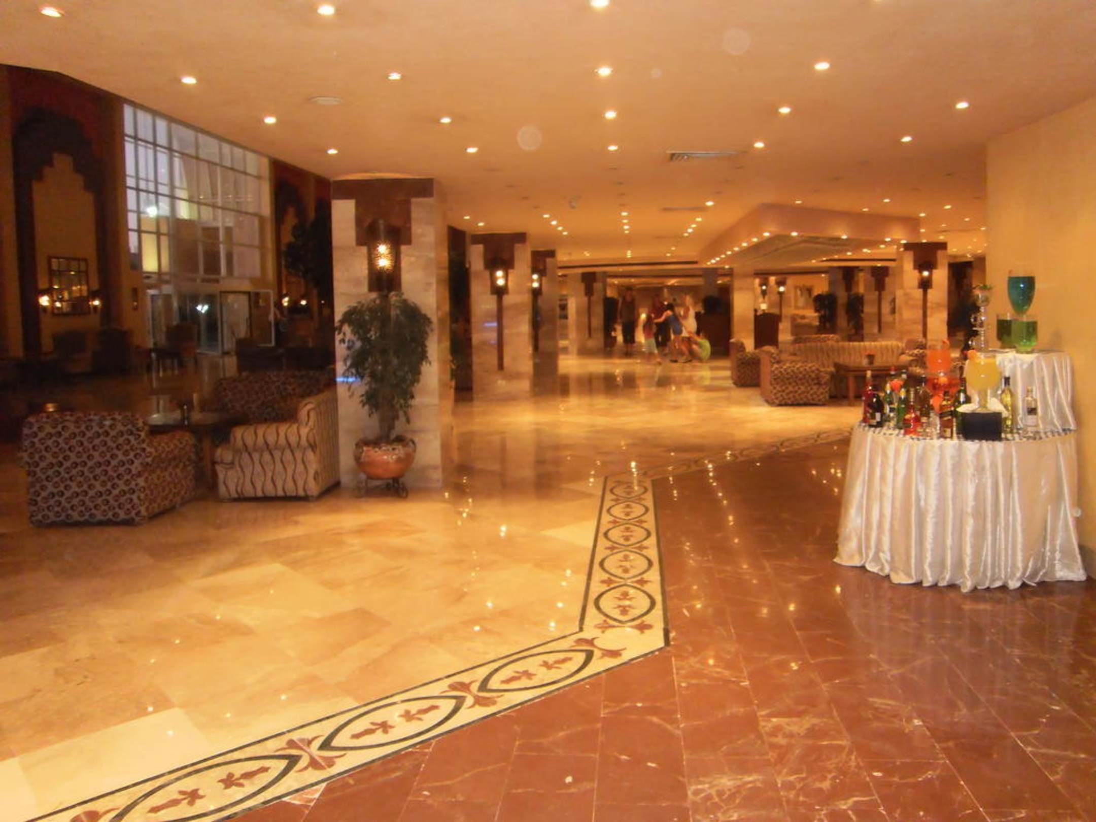 Lobby mit den Fake-Getränken am Cocktail-Tisch