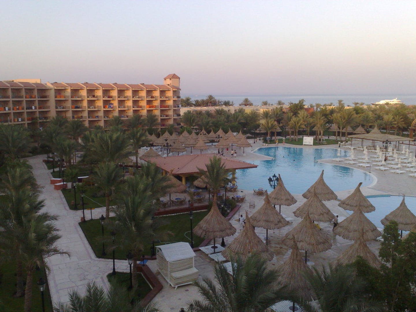 Blick vom BalkonHier der Blick von unserem Balkon auf die Pool-ANlage. Im Hintergrund sieht man das Rote Meer