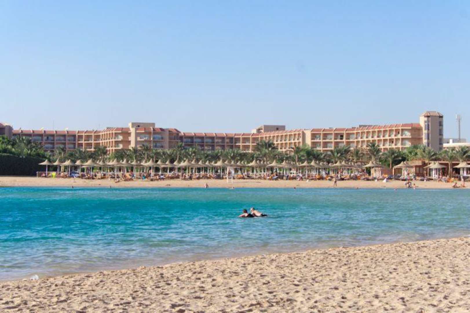 Das Siva Grand Beach von der Landzunge aus betrachtet.