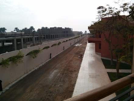 Blick vom Bungalow auf Baustelle