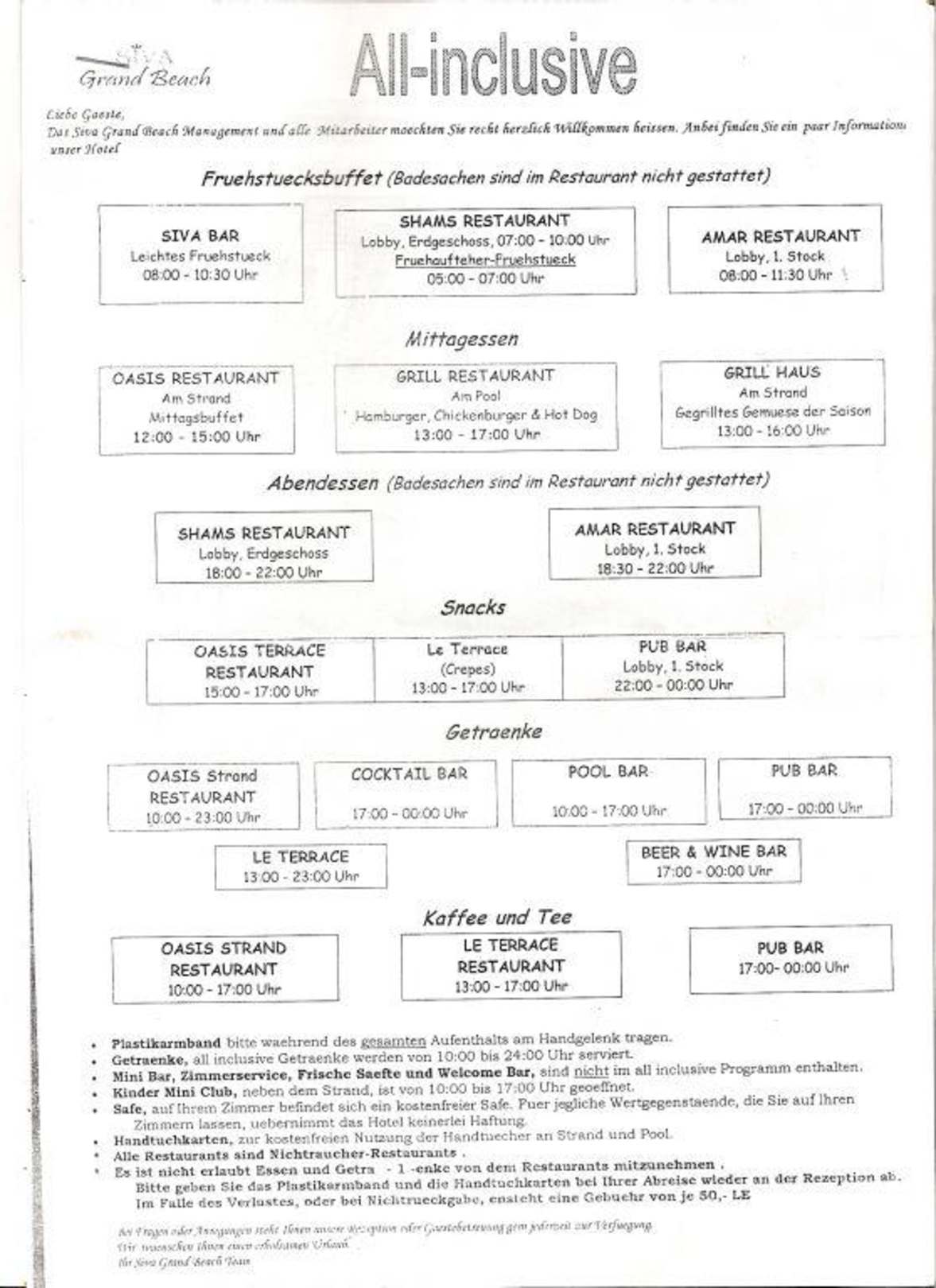 Öffnugszeiten aller Restaurants & Bars !