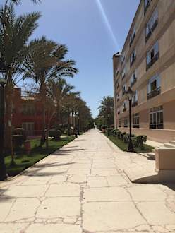 Weg zum Strand zwischen Bungalows und Hauptgebäude