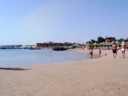 Der Hotelstrand in Richtung Westen