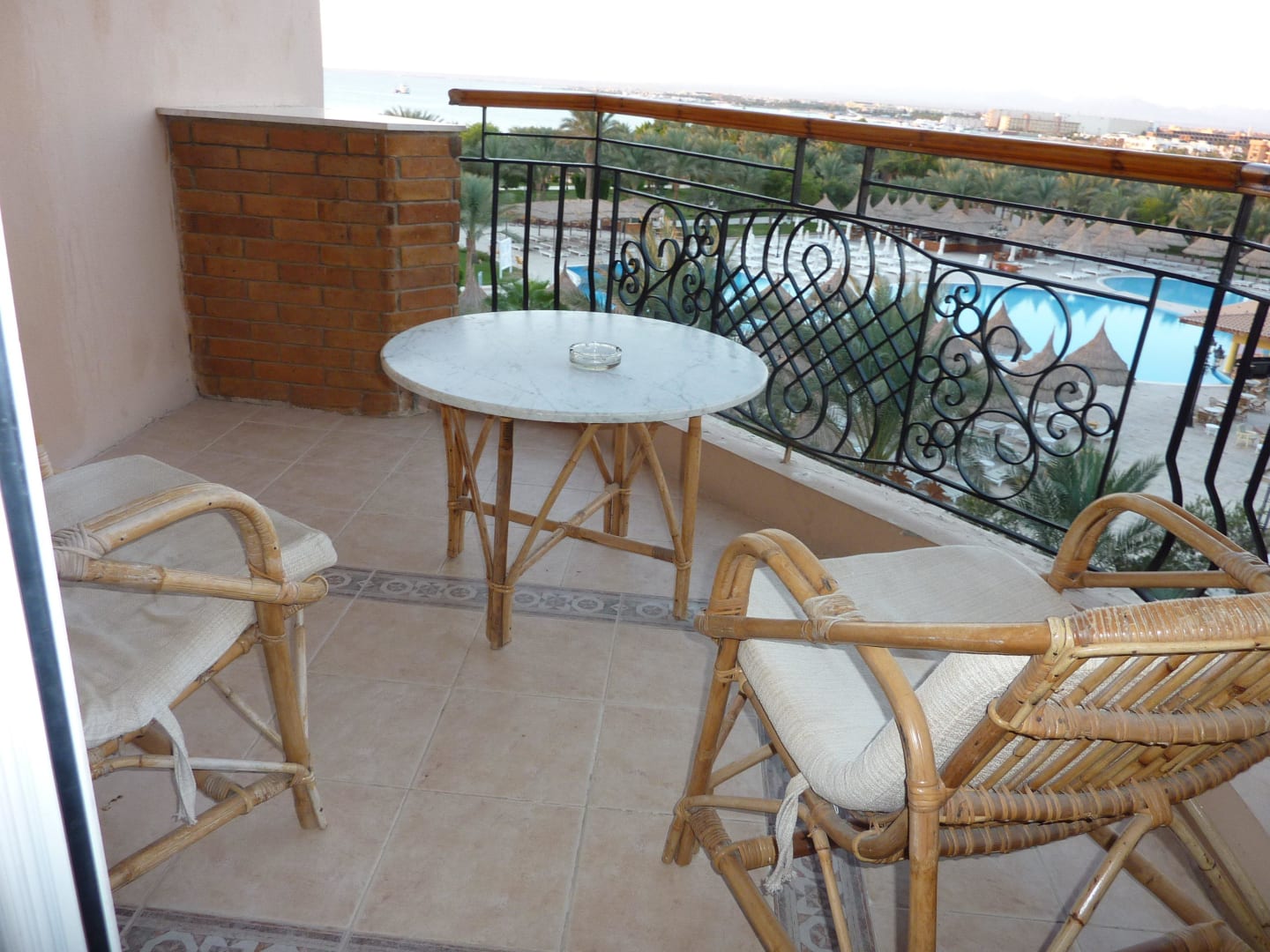 Balkon mit Meer und Poolblick