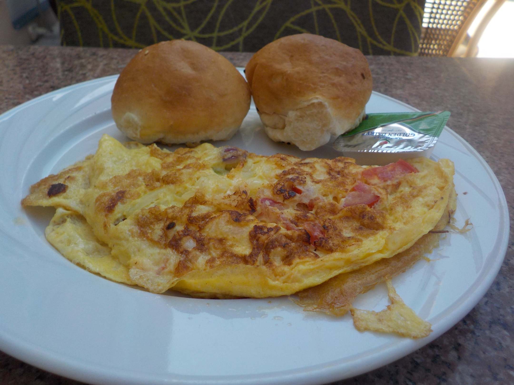 dass einzige ansehnliche Gericht, leider werden die Eier schon vorher Aufgeschlagen und in einem Behälter getan, dadurch wieder Durchfall Gefahr..