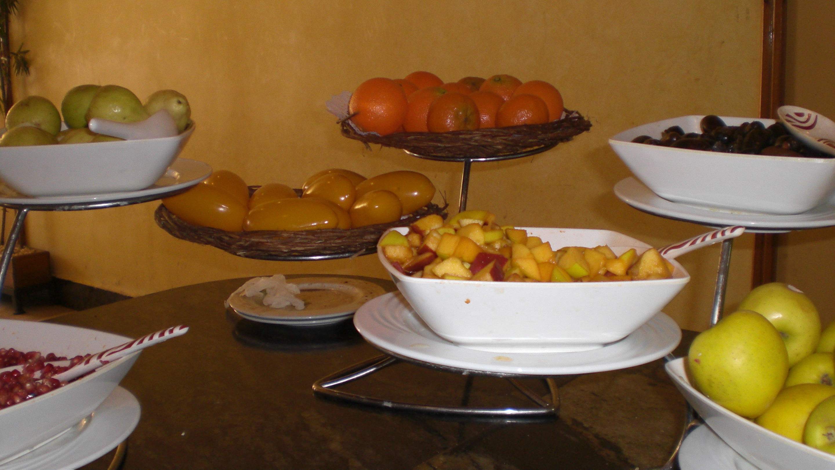 Plastikobst auf dem Frühstücksbüffet