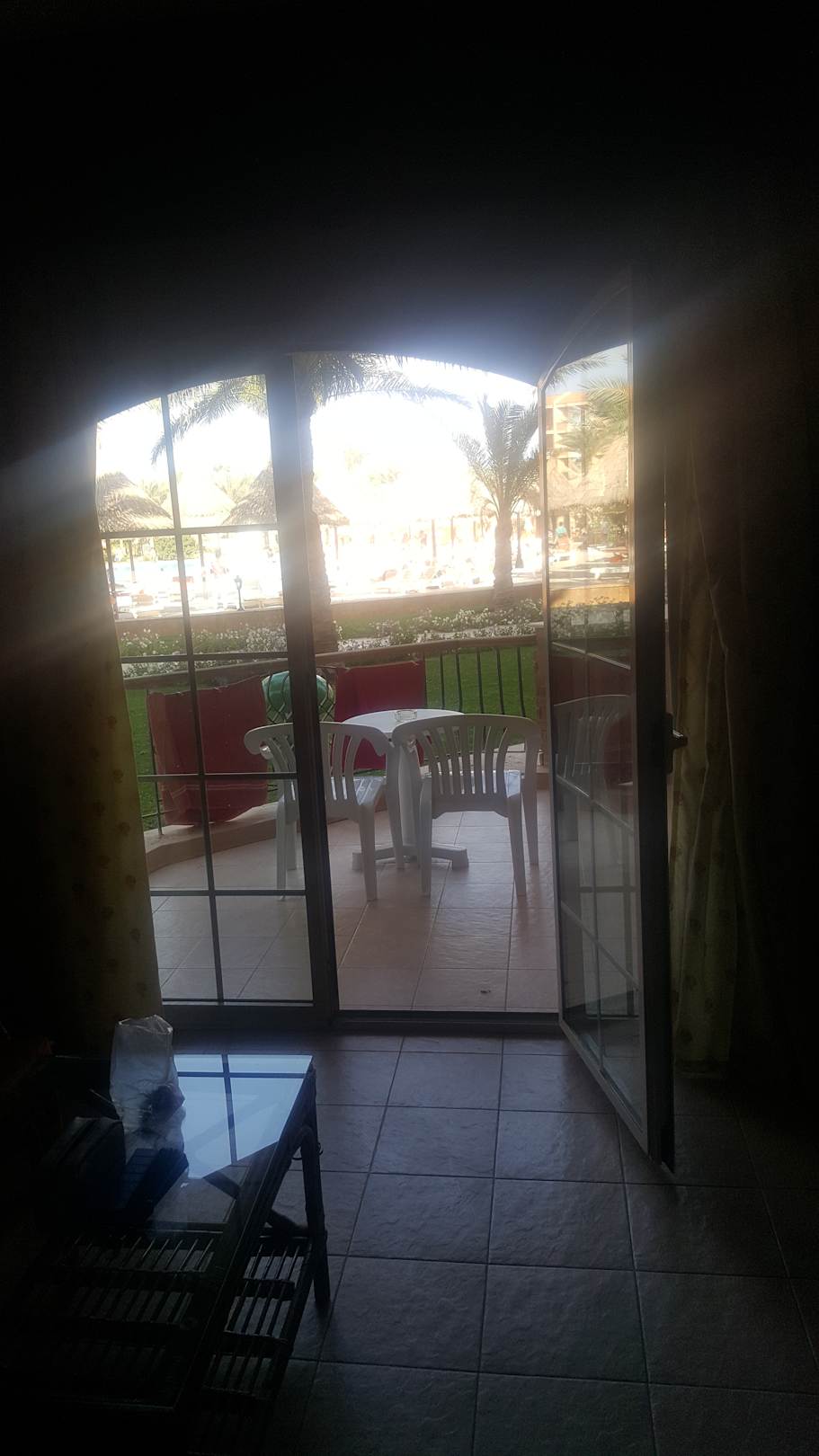 Blick vom Zimmer auf den Balkon