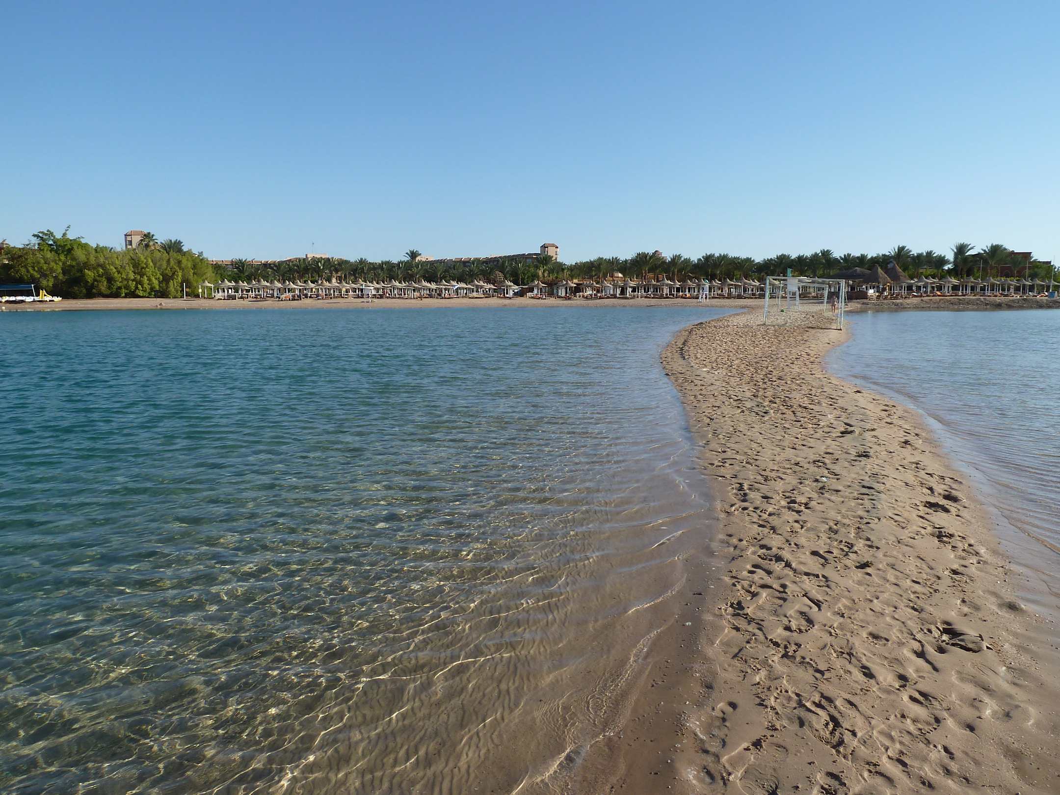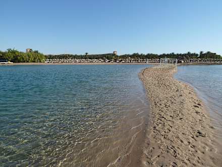 Blick von der tollen Landzunge in Richtung Stand, Hotel