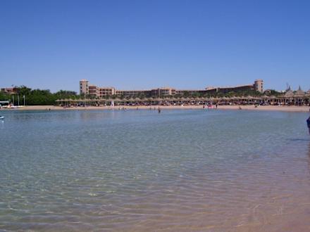 Blick von der Landzunge /Sandbank zum Hotel