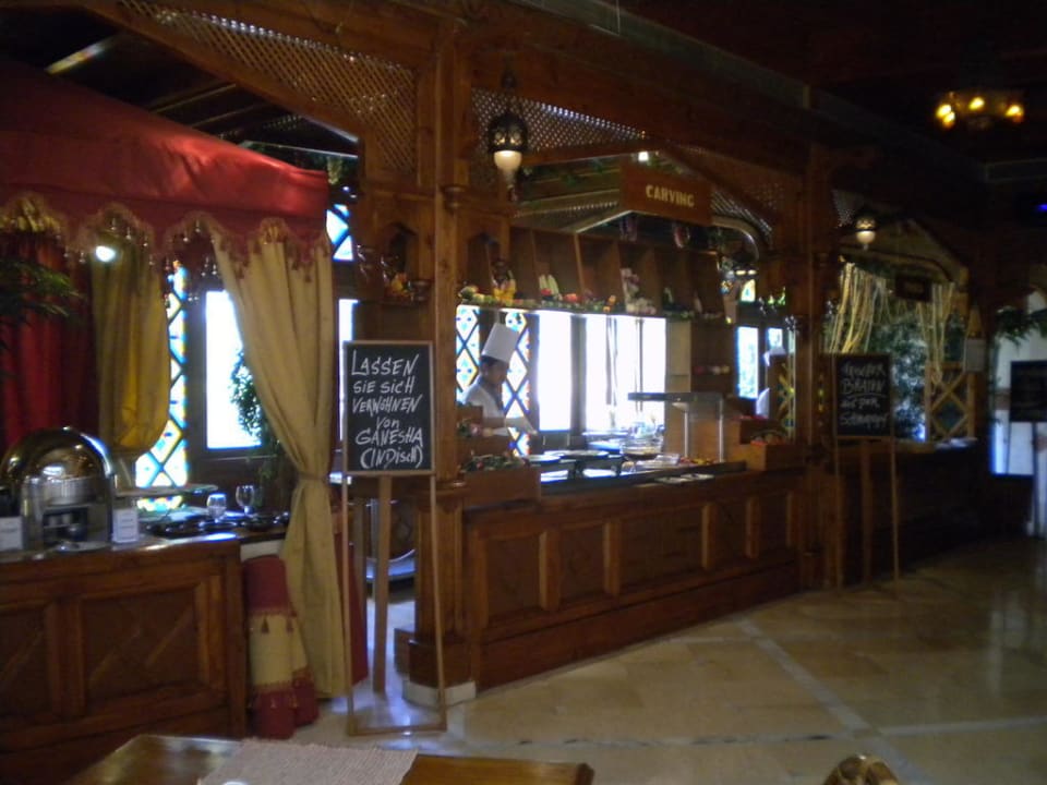 Strandrestaurant OasisBüffet mit indischen Speisen, Braten aus dem Schmortopf und dahinter die Pastastation