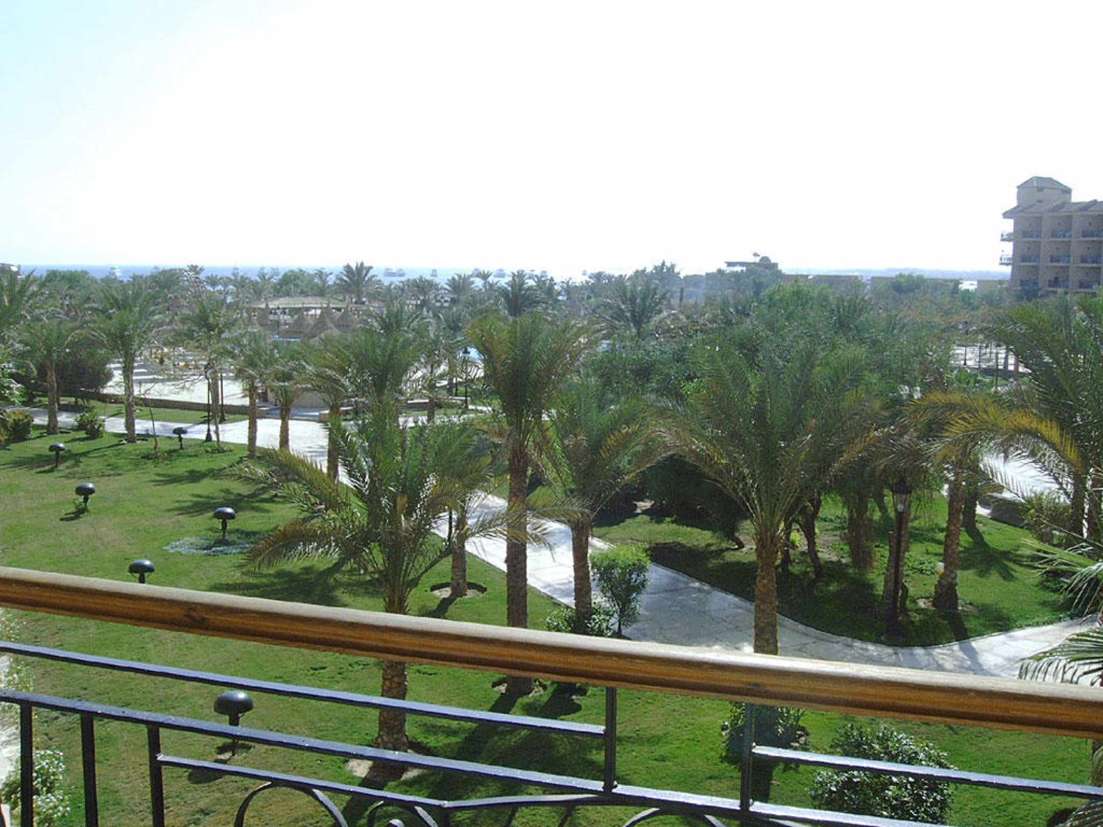 Blick von unserem Balkon Richtung Pool und Meer