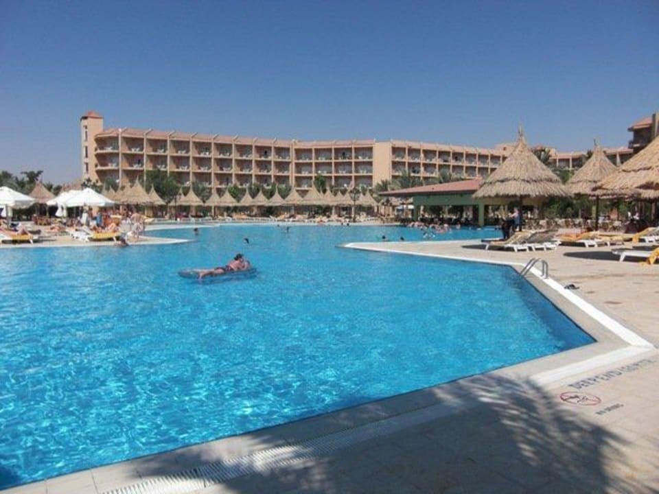 Poolanlage mit Hotel im Hintergrund