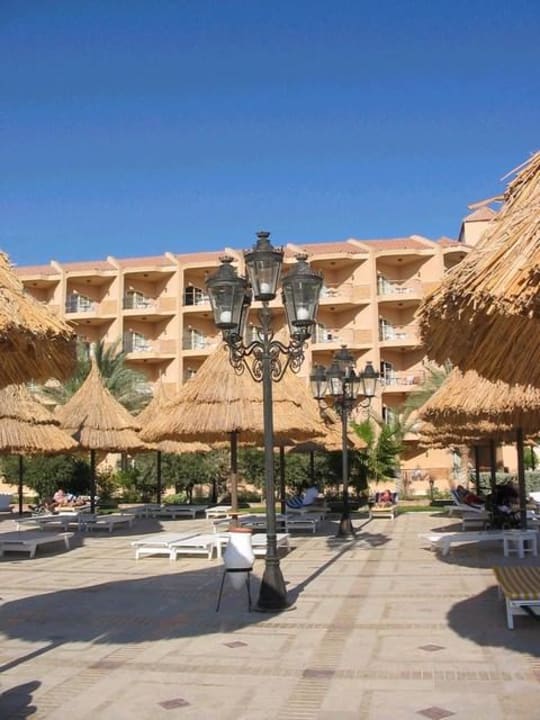 Liegen am PoolDie Liegen am Pool, fotografiert vom Poolrand, dahinter einer der Flügel mit den Juniorsuiten.